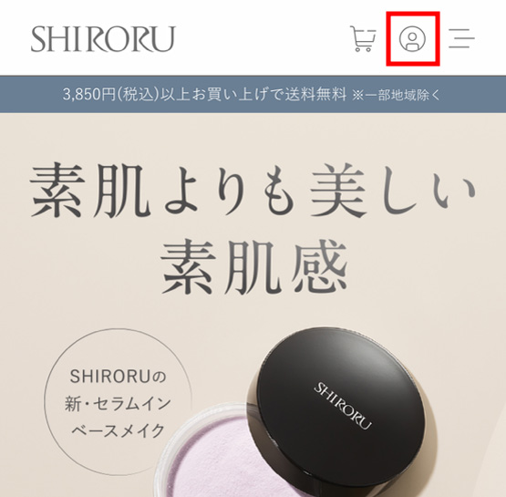 ①ブランドサイトのトップぺージ(https://shiroru.jp/)にアクセスします