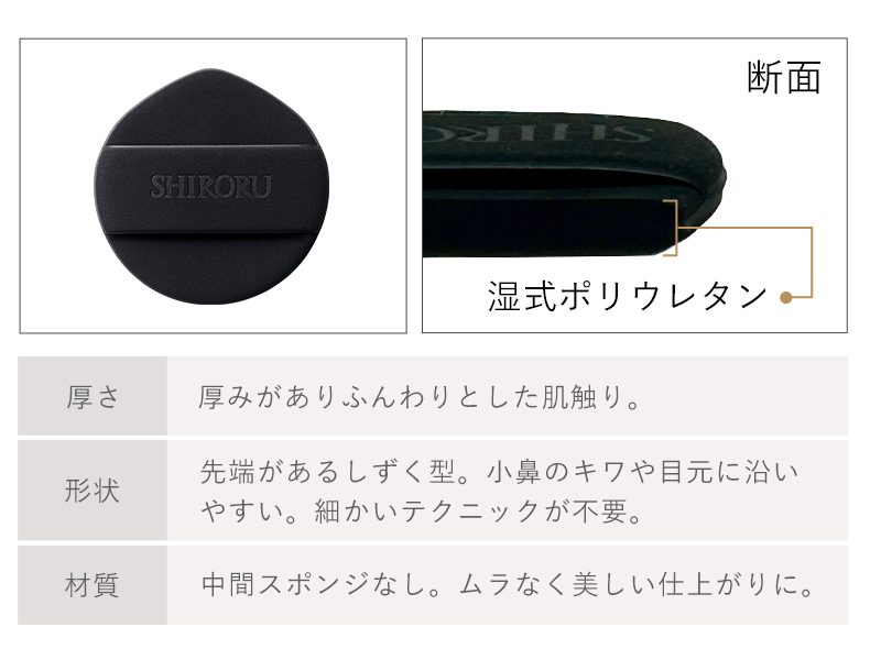 吸い付くようにフィットする特別仕様のポリウレタンパフを作りました。