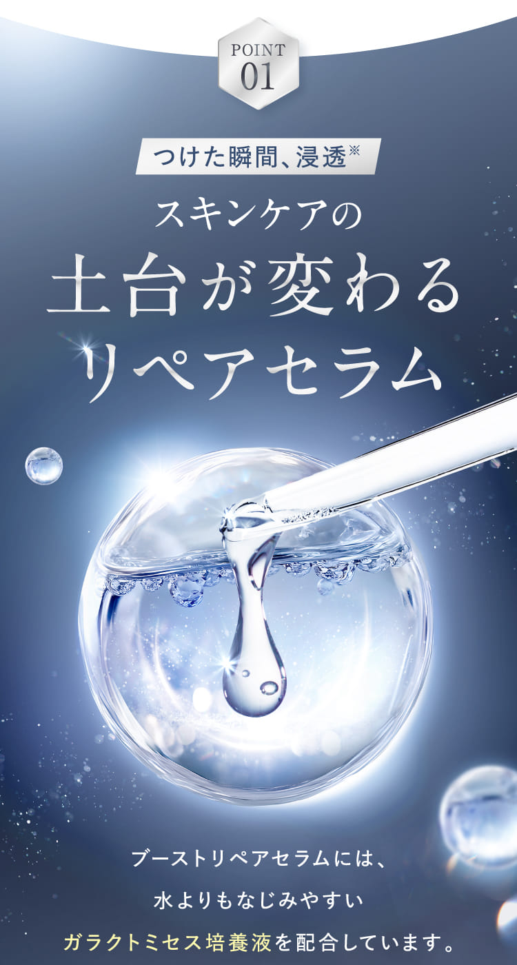 洗顔後のまっさらな肌は、きれいのチャンス。うるおい、透明感、ハリ、なめらかさ、欲しいものすべてに土台からダイレクトにアプローチ。