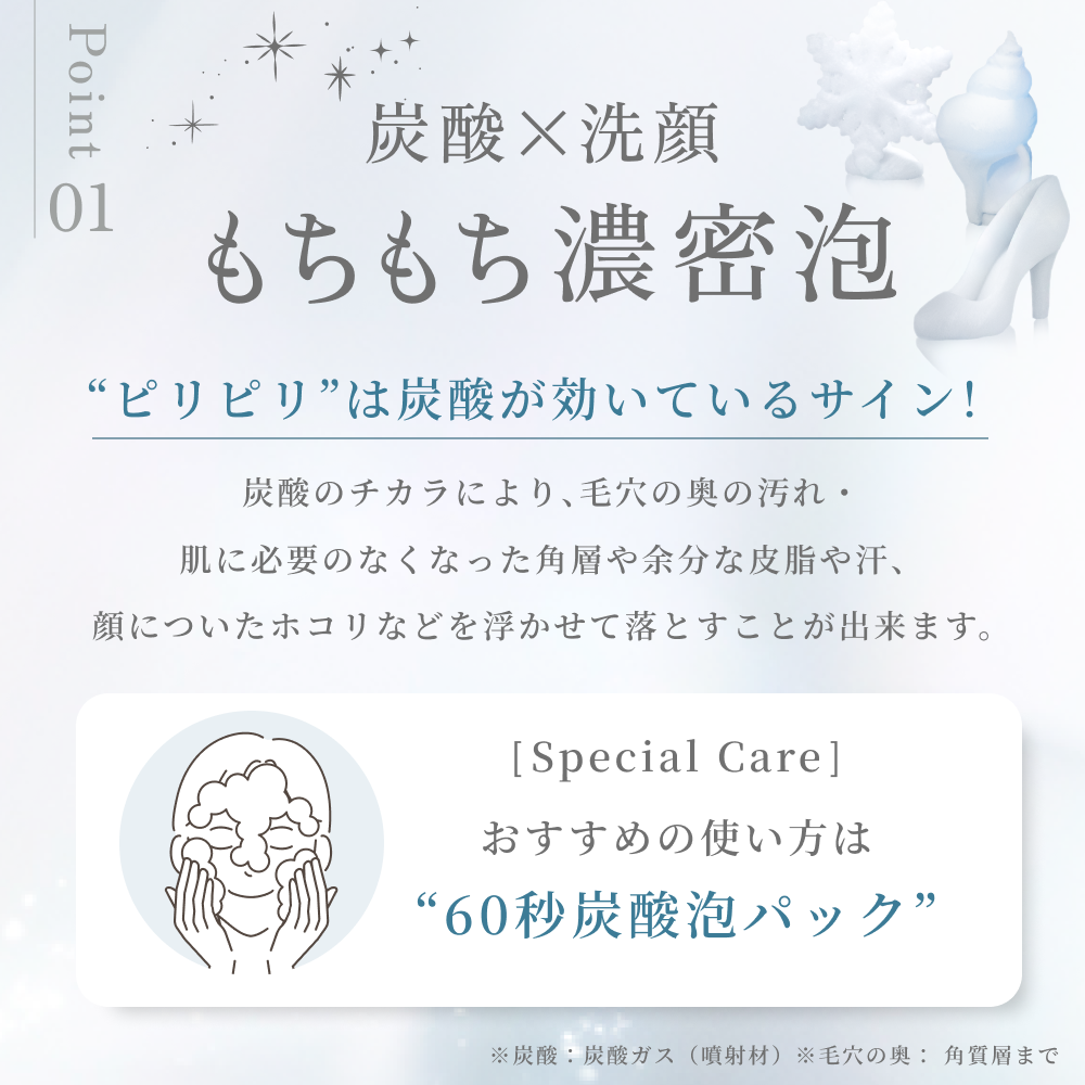 炭酸を配合することで、ワンプッシュで濃密な泡が簡単に作れる